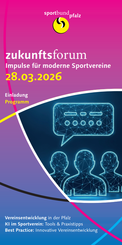 Am Samstag, dem 28. März lädt der Sportbund Pfalz zum »Zukunftsforum: Impulse für moderne Sportvereine« ein. Dabei geben Experten in Kaiserslautern spannende Einblicke in zukunftsweisende Vereinsthemen und teilen wertvolle Tipps für alle Engagierten aus Sportvereinen, Vereinsverantwortliche und Interessierte, die neue Impulse für die Vereinsarbeit suchen.