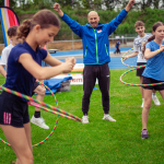 Ab 14 Uhr hatten dann alle Sportbegeisterten mit und ohne Behinderung die Chance, das Deutsche Sportabzeichen kostenfrei auszuprobieren oder direkt abzulegen. Selbstverständlich war auch in Edenkoben ein kurzweiliges Rahmenprogramm am Start: Den ganzen Tag über waren Mitmachangebote wie das Reaktionsboard und die Wurfwand der Sparkassen-Finanzgruppe, der Ernsting’s family Familien-Parcours mit Sackhüpfen oder Hula-Hoop umlagert. Der lokale Co-Moderator Sebastian Dörr ließ sich zwischenzeitlich gemeinsam mit einigen Schülerinnen zu spontanen Tanzeinlagen hinreißen.