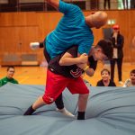 Nach der offiziellen Eröffnung folgte ein gemeinsames Aufwärmen zusammen mit den Sportbotschaftern der Nationalen Förderer, bevor sich die Schüler*innen auf die einzelnen Prüfstationen für das Deutsche Sportabzeichen verteilten. Für den Sportbotschafter Frank Stäbler ging es um 10.30 Uhr gleich weiter: bei einer Vorführung seiner Sportart Ringen brachte er Interessierten einige Tipps und Tricks aus der Praxis bei – und Marco vom Sportbund Pfalz sowie einige der Schüler*innen nahmen die Herausforderung eines nicht ganz ernst gemeinten Schaukampfes gerne an. Frank Stäbler: „Beim ältesten Sport der Welt ist es wichtig zu verstehen, dass es nicht um Kraft geht, sondern dass die beste Technik zählt.“ Auf sein Erfolgsrezept und das Deutsche Sportabzeichen angesprochen, meint er: „Du musst nicht Weltmeister sein, um anzufangen, aber du musst irgendwann mal anfangen, um Weltmeister werden zu können. Und unabhängig davon geht es auch einfach um ganz viel Spaß und Emotion. Das Deutsche Sportabzeichen ist so vielseitig und es gibt so viele Disziplinen, dass früher oder später jeder etwas findet, was ihm richtig gut liegt und ihm richtig Spaß macht.“