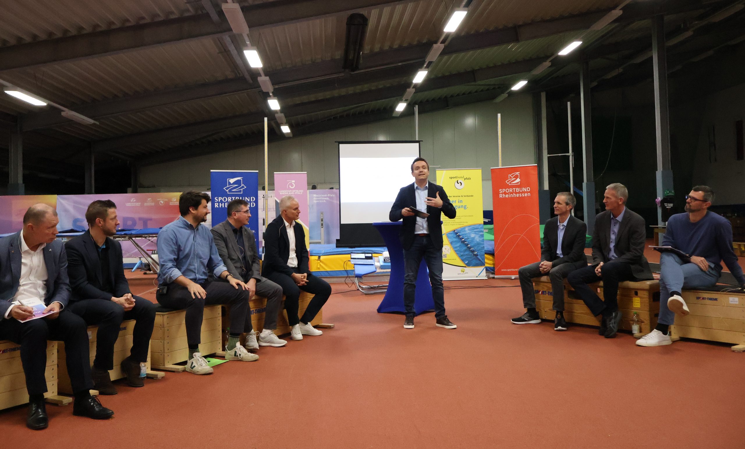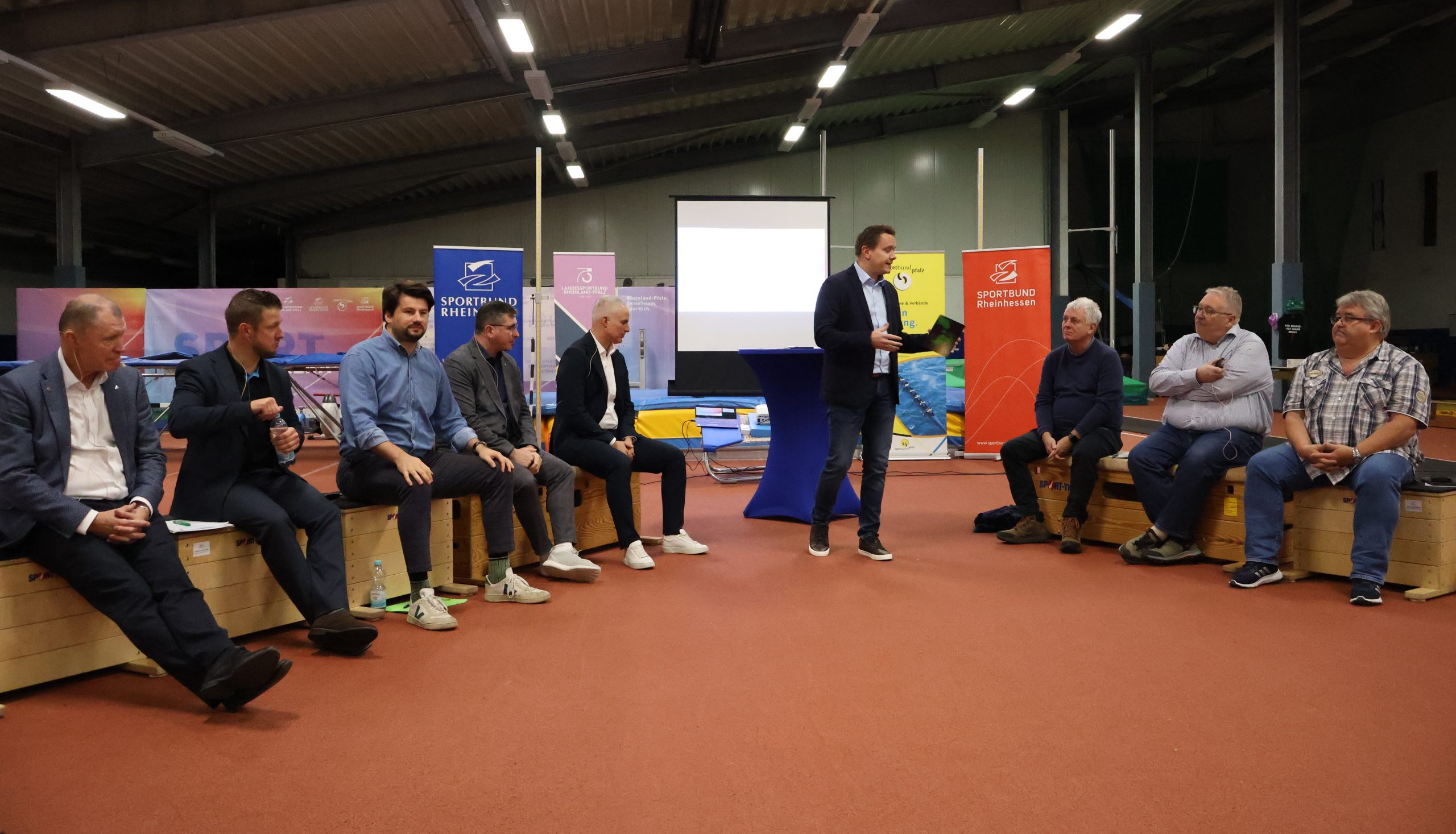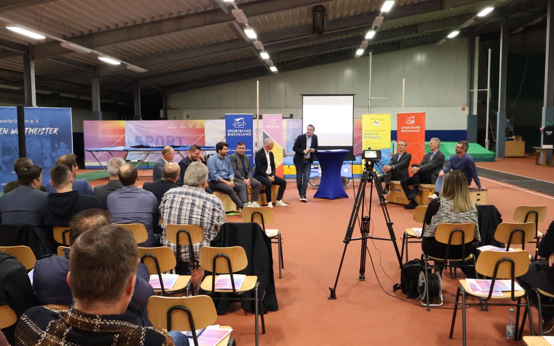 Rund 50 Teilnehmende kamen ins LAZ Zweibrücken um den Austausch zwischen Vertretern der demokratischen Parteien im rheinland-pfälzischen Landtag und Funktionären aus dem rheinland-pfälzischen Sport mitzuverfolgen. Im Fokus stand das Thema »Sportstätten« und damit verbundene Vereins- und Verbandsthemen, wie Bürokratieabbau, Finanzierung und steigende Kosten für Vereine. Sebastian Stollhof (Sport-Reporter) moderierte zwei Diskussionsrunden – Michael Hüttner (SPD), Dennis Junk (CDU), Fabian Ehmann (Bündnis 90/Die Grünen), Steven Wink (FDP) und Patrick Kunz (Freie Wähler) stellten sich den Fragen der Vertreter des organisierten Sports.