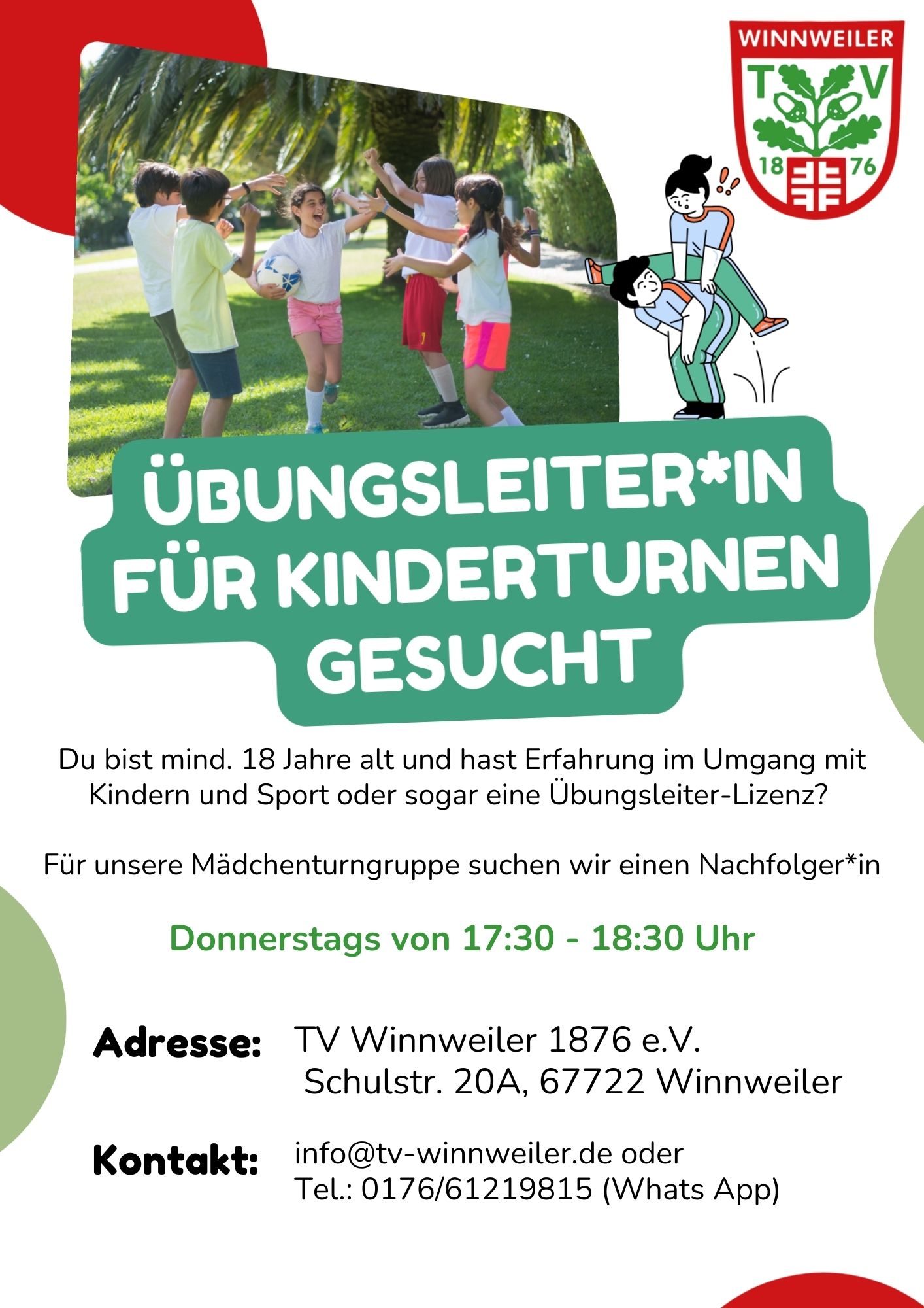 Der TV 1894 Asselheim e.V. sucht ab sofort eine/n engagierte/n Übungsleiter/in, für seine Schülerturngruppe.